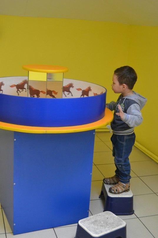 Э: Конечно же маленькие дети на острове, как и вы, не обходятся без мультиков. И перед вами настоящая мультмашина. Посмотрите, ряд картинок расположены в специальном, хронологическом порядке. Когда мы начинаем раскручивать колесо, то в зеркале наблюдаем как лошадка скачет. Вот точно так же создаются и наши мультики. Только картинок рисуют гораздо больше, чтобы получился сюжет.