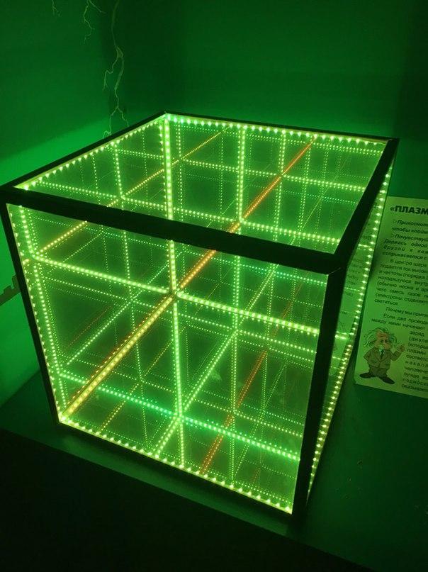 Дальше экскурсовод включает следующий экспонат «Куб бесконечности».