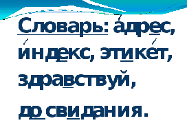 Оборудование: конверты, документ-камера, ноутбук, экран, письмо, презентация.