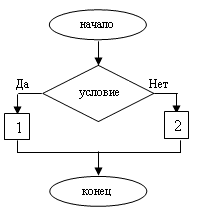 Примечание: одного из блоков: 1 или 2 может не быть вовсе. Тогда в одном из случаев будут выполняться какие-либо действия, а в другом - ничего не будет выполняться.