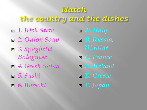 T: - Yes, you are right. Today we are going to speak about recipes from all over the world.