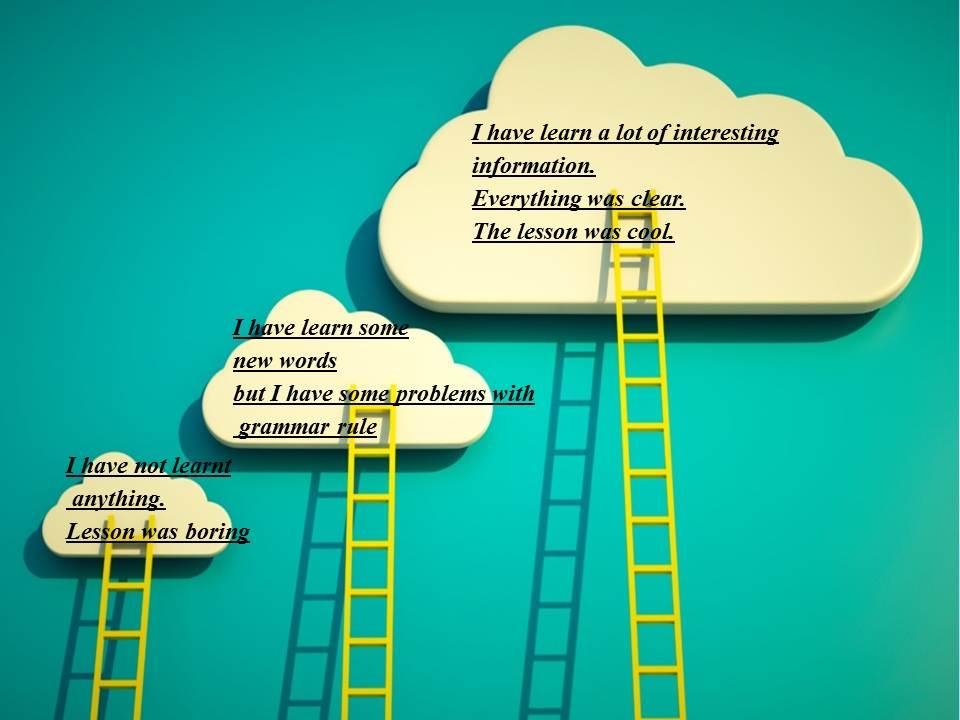 Let’s sum up our lesson. Here you see the stair of success. Pupils if you satisfied with the lesson and everything was clear choose this happy doctor. If you don’t, choose this unhappy doctor and put it on your stair of success. Your marks for the lesson are…