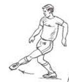 1.Стоя на месте: игроки выполняют размахивание бьющей ногой вперед с разворотомстопы на 90°. Затем это движение повторяется, но уже со сгибанием опорной ноги в коленном суставе перед началом движения бьющей ногой вперед.