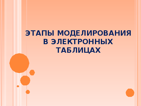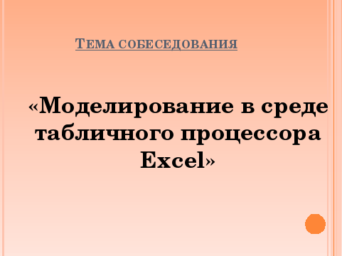 НА ТЕМУ «МОЕЛИРОВАНИЕ В СРЕДЕ ТАБЛИЧНОГО ПРОЦЕССОРА Excel»