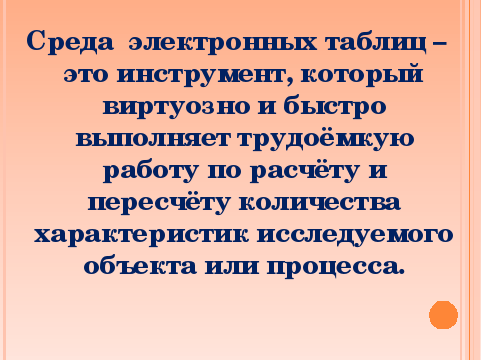 формирование представления о вычислениях в электронной таблице как наиболее важных в изучении информатики и широко применяемых на практике.