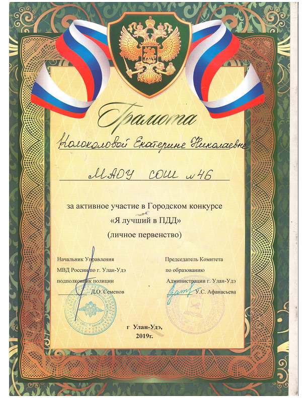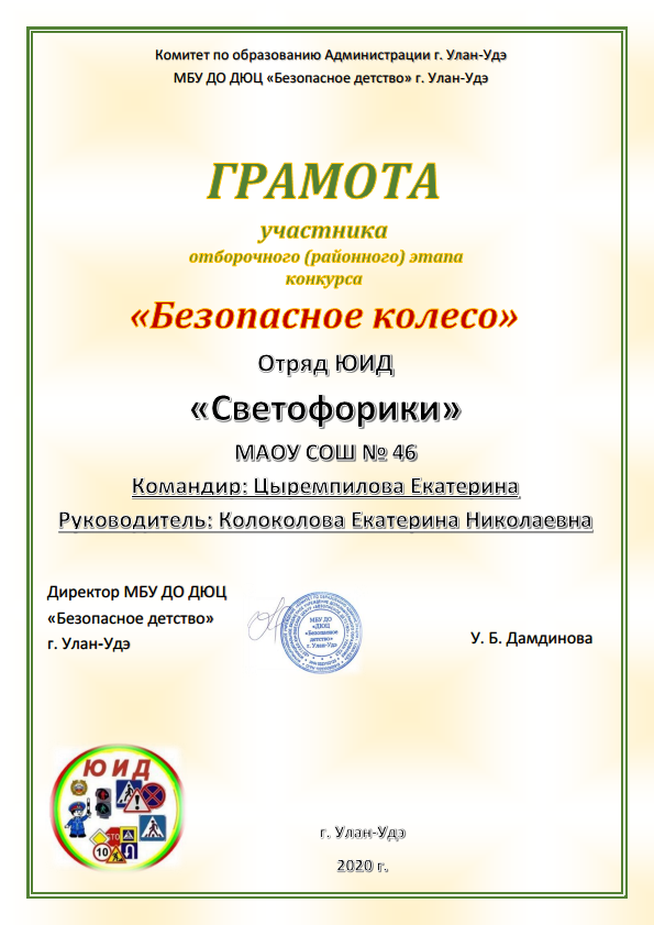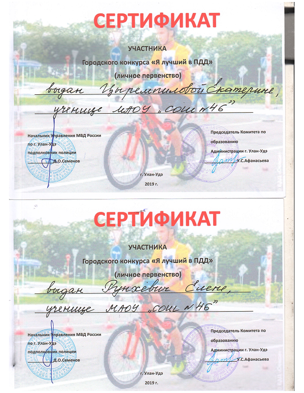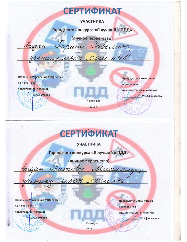 В октябре 2019 года приняли участие в городском конкурсе « Я лучший в ПДД» ( личное первенство). Команда