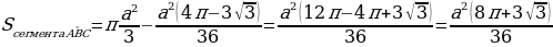 Но это не полное решение задачи. Нам еще нужно найти площадь сегмента, опирающегося на угол в