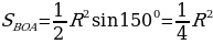 центр круга, соединим точки, образующие радиусы ВО, ОС, ОА. Для начала найдем часть круга, заключенную в угле