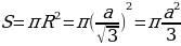 Три площади сектора равны разности всей площади круга и площади равностороннего треугольника: