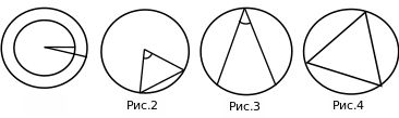 . Найдите отношение площади той части круга, которая заключена в этом угле, к площади всего круга.(Рис.3)