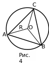 4) Сторона равностороннего треугольника, вписанного в окружность, равна а. Вычислите площадь отсекаемого ею сегмента.(Рис.4)