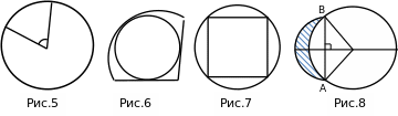 7)Сторона квадрата, вписанного в окружность, отсекает сегмент, площадь которого равна
