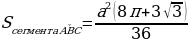 (площадь сегмента равна разности площади сектора, опирающего на угол