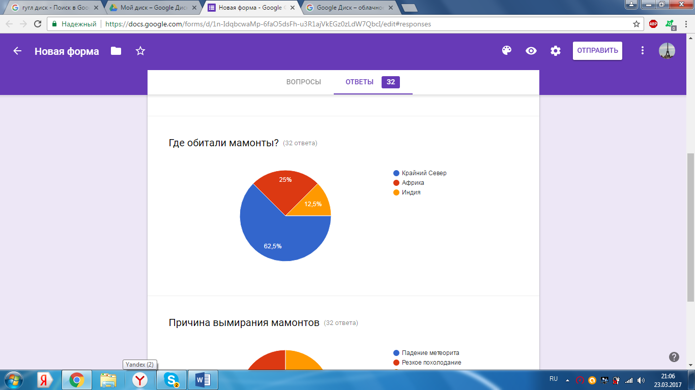 Таким образом, большинство считают, что мамонт жил на нашем Крайнем Севере. (Приложение №3, рис.3)