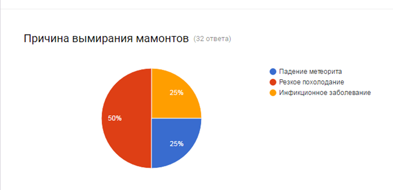 На третий вопрос, который звучит так: «Почему вымерли мамонты?» респонденты ответили следующим образом