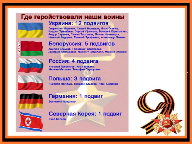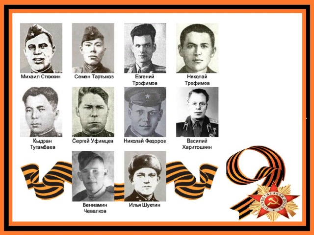 Герои – земляки, совершившие подвиги во время Великой Отечественной войны. Вспомним их поименно: Слайд №6-10