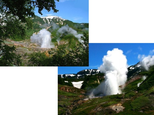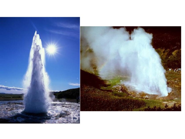 Гейзеры- вулканическое явление, это горячая подземная вода, бьющая фонтаном.