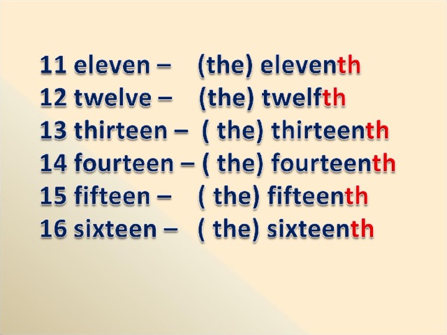 10 ten – ( the) tenth.