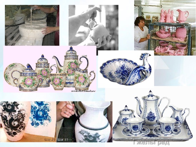 Назовите город, где изготавливают бело-синюю глиняную посуду.