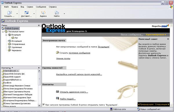 Задание: Загрузите почтового клиента Microsoft Outlook Express, изучите основные элементы интерфейса.