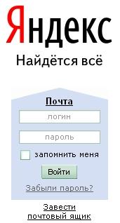 Откройте свой почтовый ящик на бесплатном почтовом сервере, (например www.yandex.ru), введя логин и пароль в соответствующую форму: