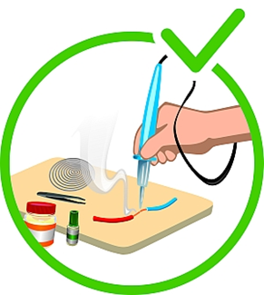 При роботі паяльник розігрівається до температури понад 200 С, тому дуже важливо ретельно дотримуватися нижченаведених правил техніки безпеки.