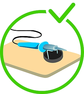 4. У той час, коли безпосередньо не працюєте з паяльником і він знаходиться в нагрітому стані, встановлюйте паяльник на спеціальну термостійку підставку, яка йде в комплекті з набором.