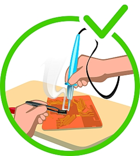 6. У зв'язку з тим, що при пайці виділяється в незначних кількостях дим, виконуйте пайку в добре провітрюваному приміщенні. Вкрай бажано наявність витяжної вентиляції над місцем проведення робіт.