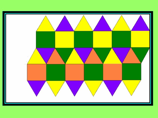 - Але паркет можна викласти не тільки із прямокутних дощечок, а і із різних правильних многокутників з однаковими сторонами, якщо їх викладати в певному порядку.