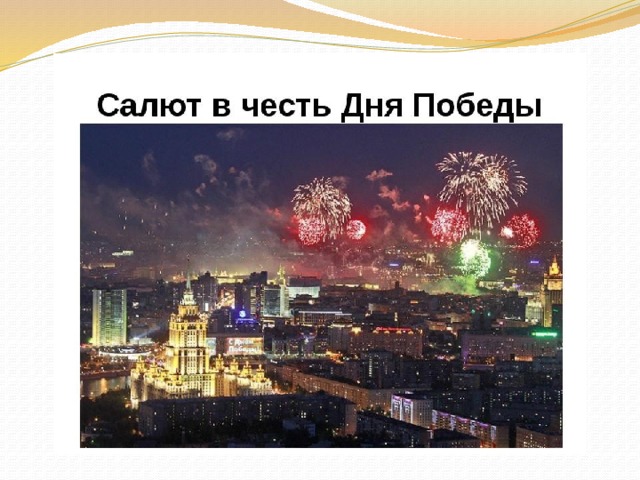 М а т е р и а л . Листы цветной бумаги тёмных оттенков; разноцветная гуашь; принадлежности для рисования: подставка для кисточки, салфетка, маленький лист бумаги для проверки цвета, кисть щетинная №5. Иллюстрации или рисунки-образцы с изображением салюта.