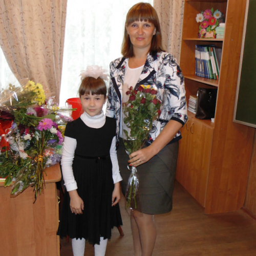 Ведущий 1: А знаете ли вы, что лучший подарок - это подарок, сделанный своими руками? Наши ребята очень постарались, готовясь к этому празднику. Посмотрите, какие прекрасные цветы расцвели в нашем классе. И это всё для Вас, милые мамы и бабушки!(Дети подходят к доске, снимают поздравительные открытки с цветами. сделанные своими руками вручают мамам, бабушкам, целуют, обнимают их)