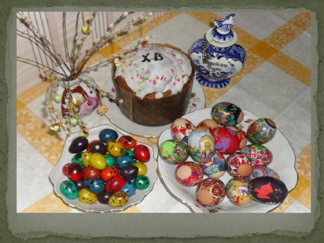 - Лишь после церкви семья собирается за богатым праздничным столом, угощаются пасхальными куличами (пасочками), а дети играют с крашеными яичками.