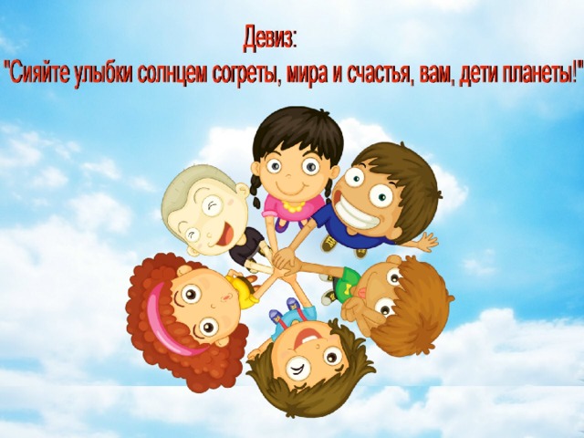 Наш девиз : « Сияйте улыбки, солнцем согреты, мира и счастья , вам, дети планеты!»