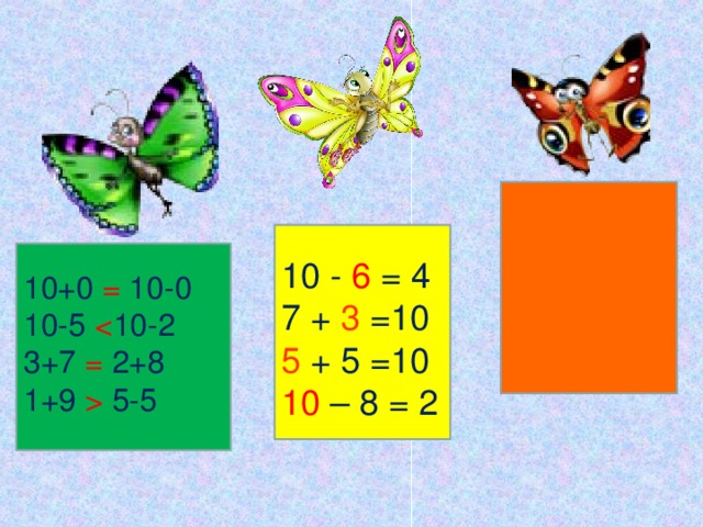 У кормушки сидели 4 птички. К ним прилетели еще 6 птичек. Сколько птичек стало у кормушки?