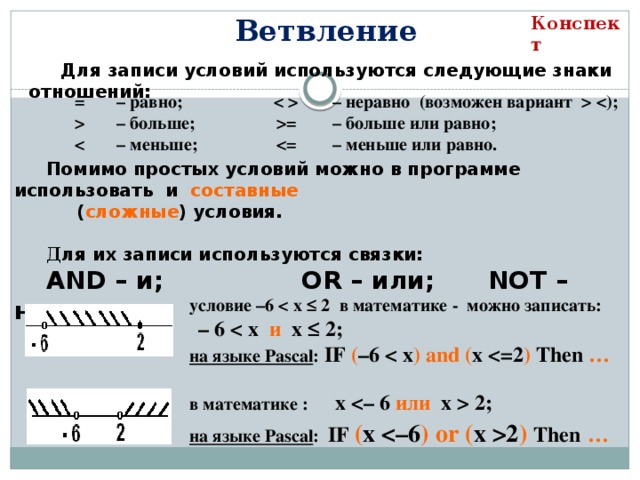 - можно использовать сложные условия: если в теле цикла только один оператор, слова begin и end можно не писать: