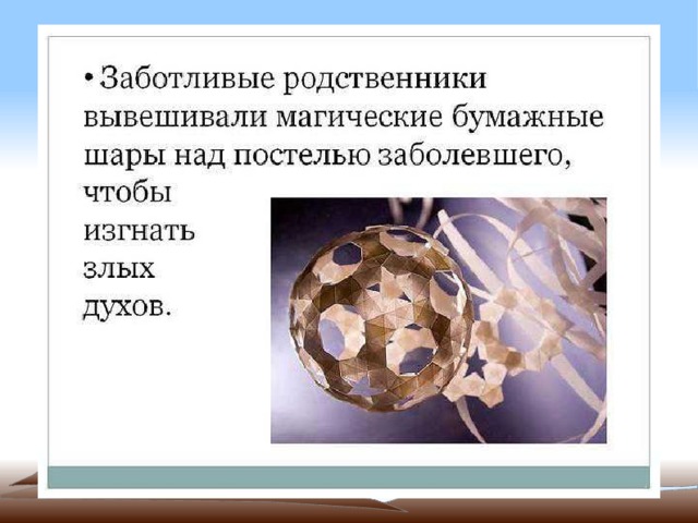 заботливые родственники вывешивали магические бумажные шары над постелью заболевшего, чтобы изгнать злых духов
