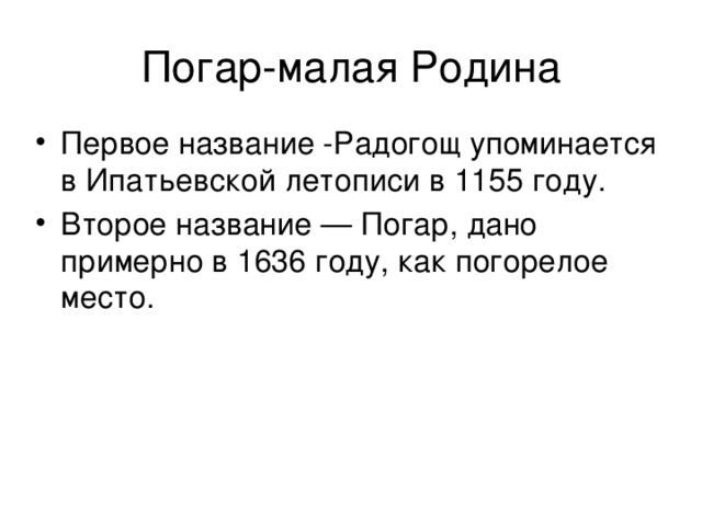 - 1676 год Стародубский полковник Рославец хотел присоеденить Погар к Москве. Был отправлен в Сибирь.