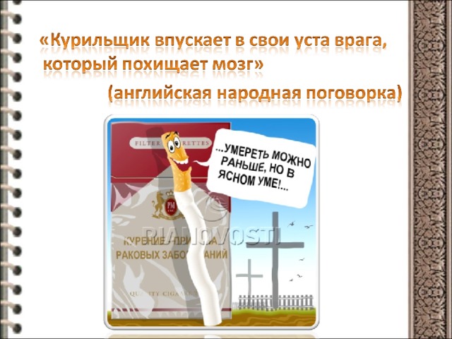 «Курильщик впускает в свои уста врага, который похищает мозг»