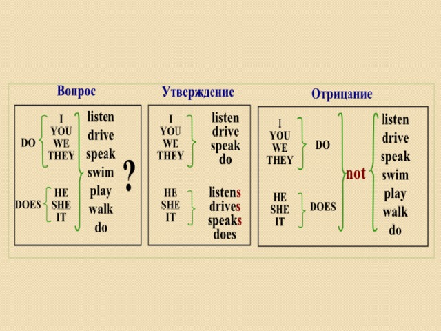 Образуйте утвердительную, отрицательную или вопросительную форму.