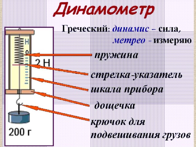 На практике часто приходится измерять силу, с которой одно тело действует на другое. Для измерения силы используется прибор, который называется динамометр.