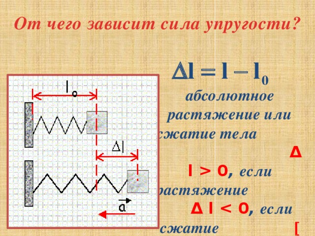 абсолютное растяжение или сжатие тела Δ l 0 , если растяжение Δ l , если сжатие Δ l = м