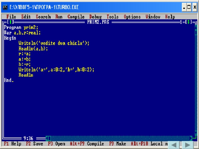Writeln(‘ a=’ , a:0:2, ‘ b=’ , b:0:2);
