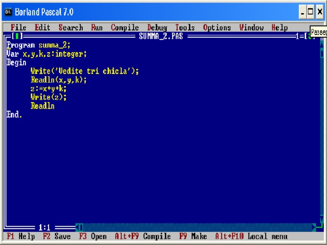 Особую роль в тексте программы играют имена и зарезервированные слова. Имена применяются для обозначения программы и ее объектов. Имя может состоять из любого количества букв или цифр, но должно начинаться с буквы. В имя можно включать знак подчеркивания (например Prim _1). В программе SUMMA пять имен: SUMMA , X , Y , K , Z . Программисты часто используют осмысленные имена в своих программах . Это всегда полезно, а в сложных программах совершенно необходимо.
