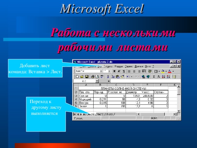Работа с несколькими рабочими листами