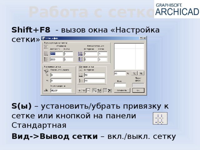 Shift+F8 - вызов окна «Настройка сетки»