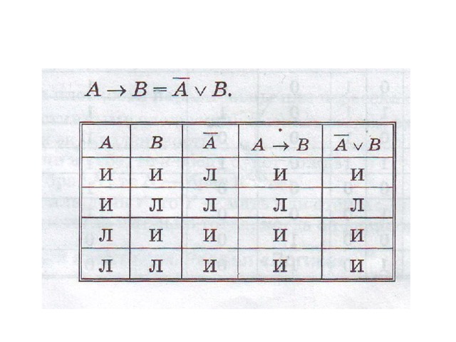 Таблица истинности – перечень значений функции для всех сочетаний значений аргументов. Содержит 2 в степени n строк – где n число аргументов.