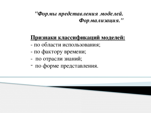 "Формы представления моделей. Формализация."