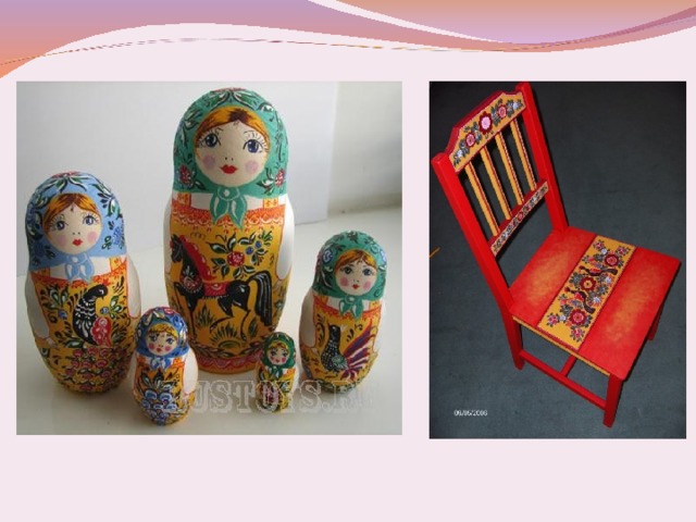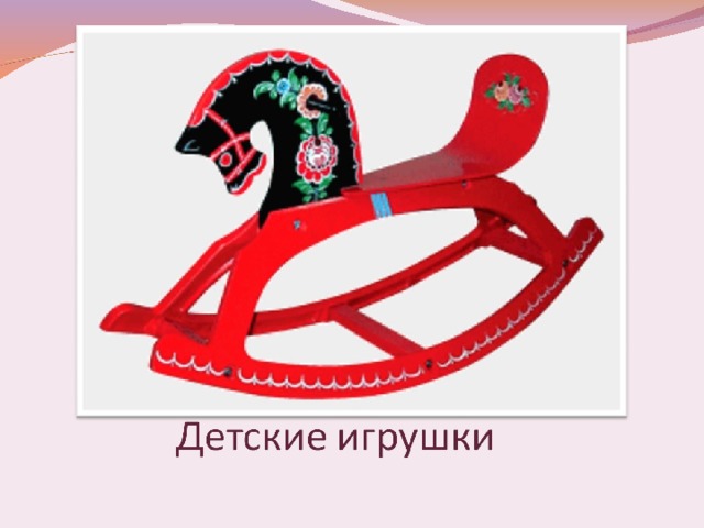 Городецкая роспись - это фантастические цветы, птицы, кони, украшающие детскую мебель и игрушки, прялки, посуду, кухонные доски, разного рода сувениры.