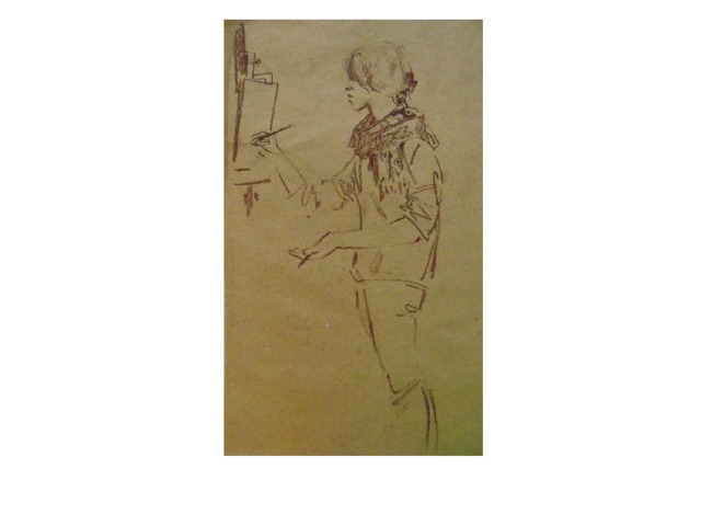 Выполнение набросков мягким материалом (сепия).