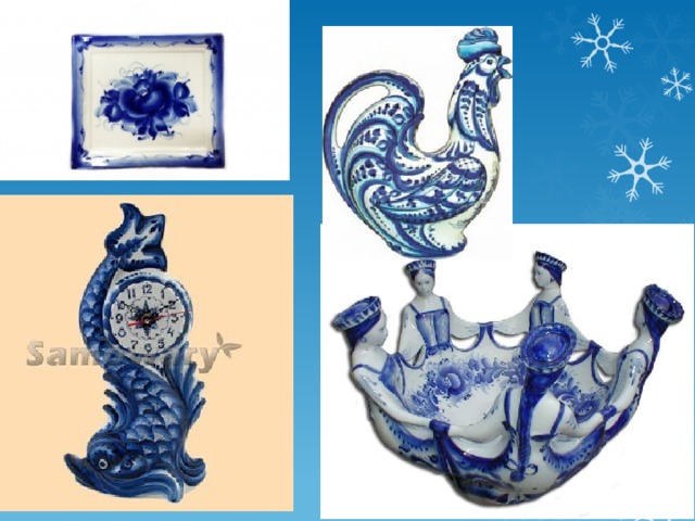 Гжельские изделия привлекают к себе тех людей, кто любит все прекрасное. Фарфор очень красив, наряден, имеет широкий ассортимент выпускаемой продукции. Это разнообразная посуда, шкатулки, вазы, статуэтки, игрушки и изделия для интерьера: керамическая плитка, камины, люстры, телефоны.